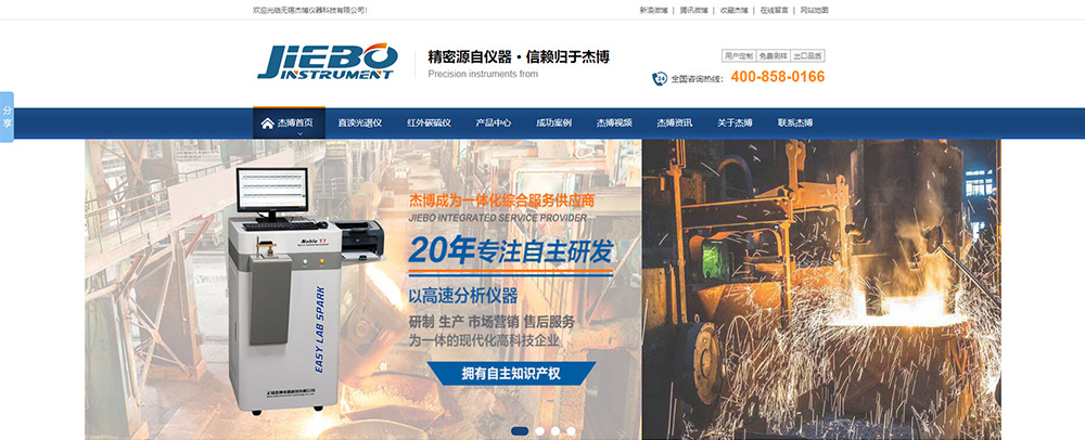 無錫杰博電器科技有限公司光譜儀碳硫分析儀營銷型網站代運營案例